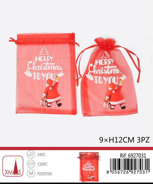NATALIZIA sacchetto babbo natale 9x12cm 3pz