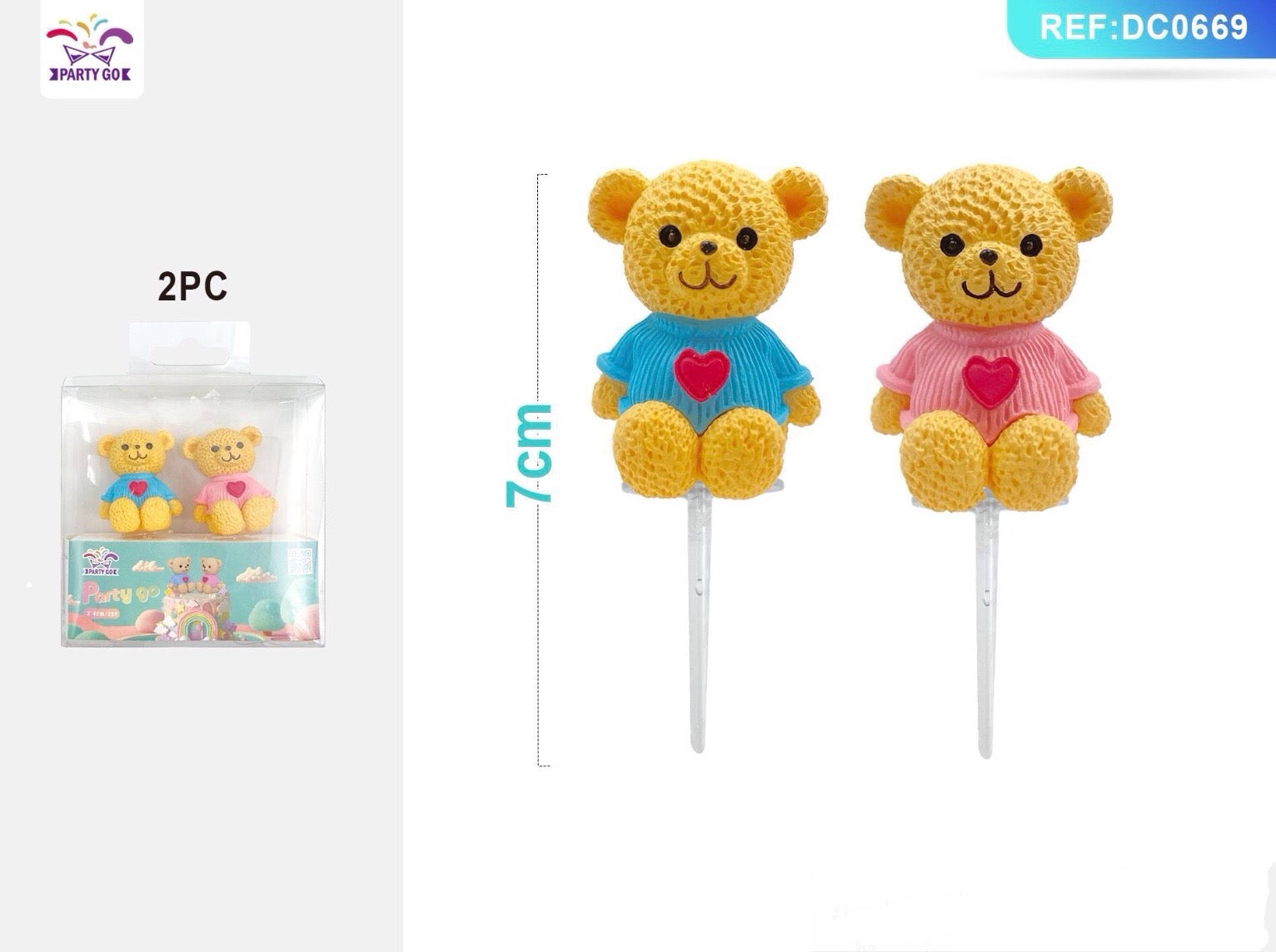 DECORAZIONI per torta di ORSO marrone con cuoricini 2pz