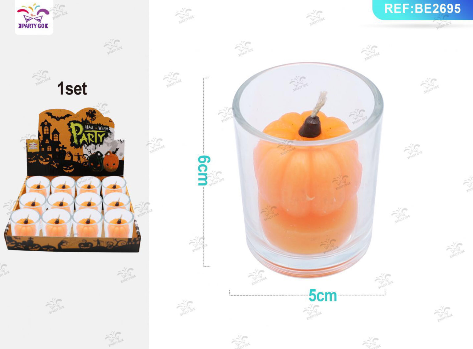 HALLOWEEN candela in vetro zucca 6x5cm