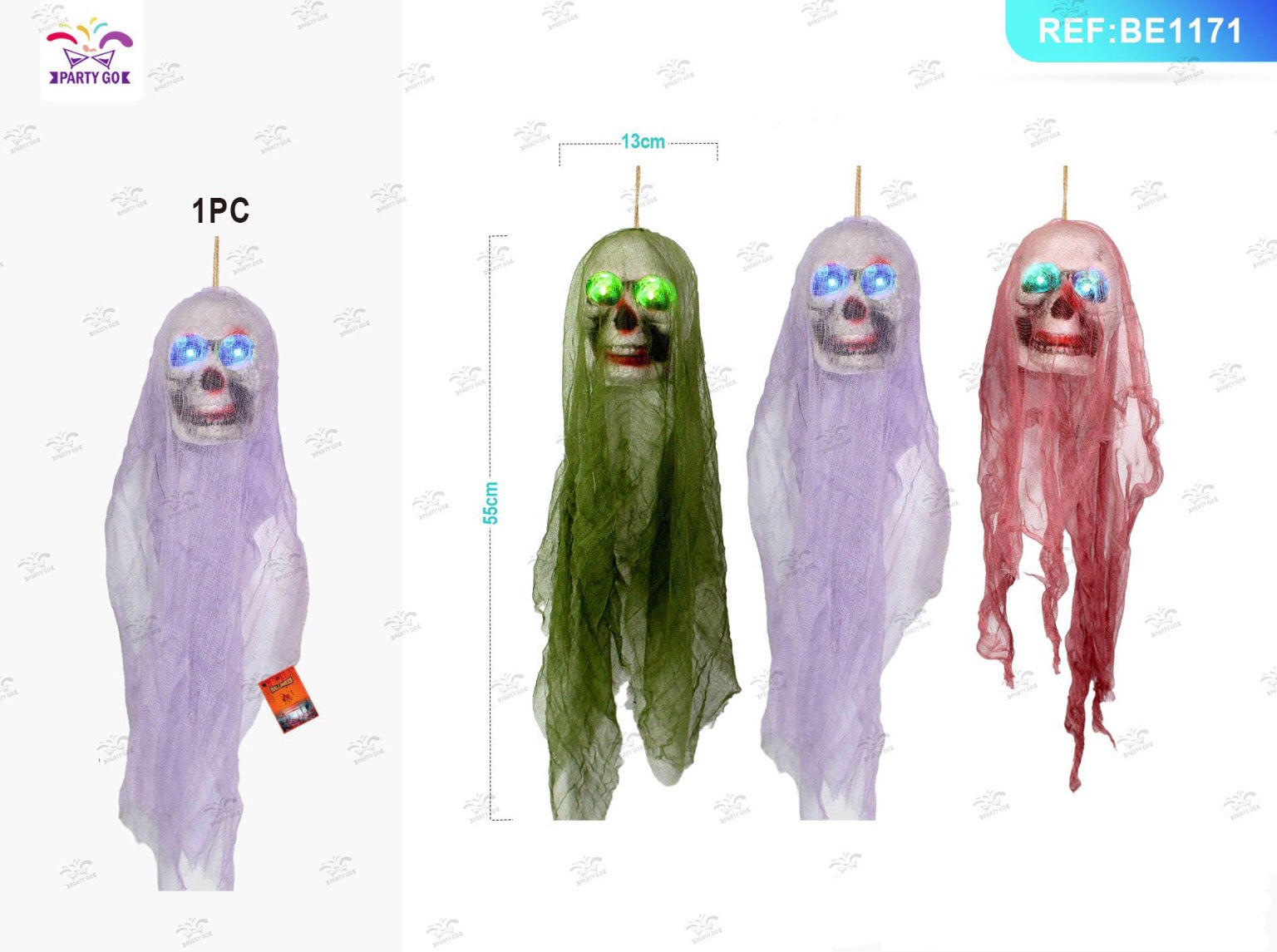 HALLOWEEN ciondolo di fantasma con luci 55x13cm