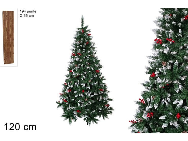 NATALIZIA albero 120cm 194punte innevato con pigne bacche