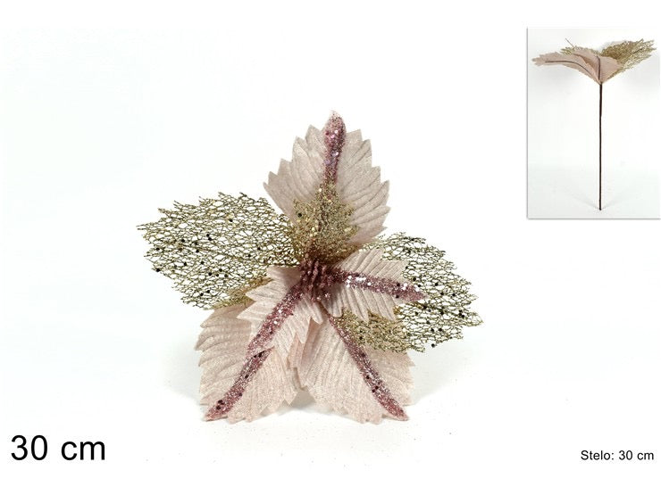 NATALIZIA fiore natalizio retinato rosa 30cm