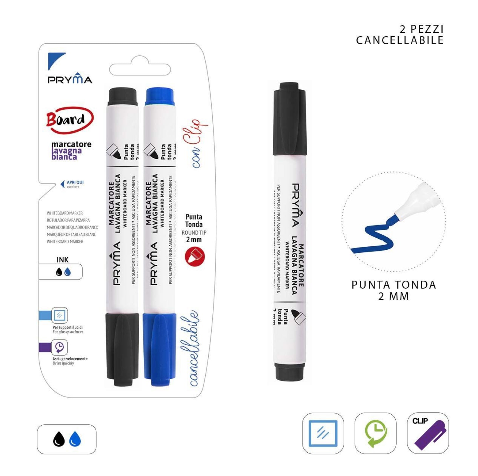 PRYMA marcatore lavagna bianca p/tonda 2mm 2pz n/b