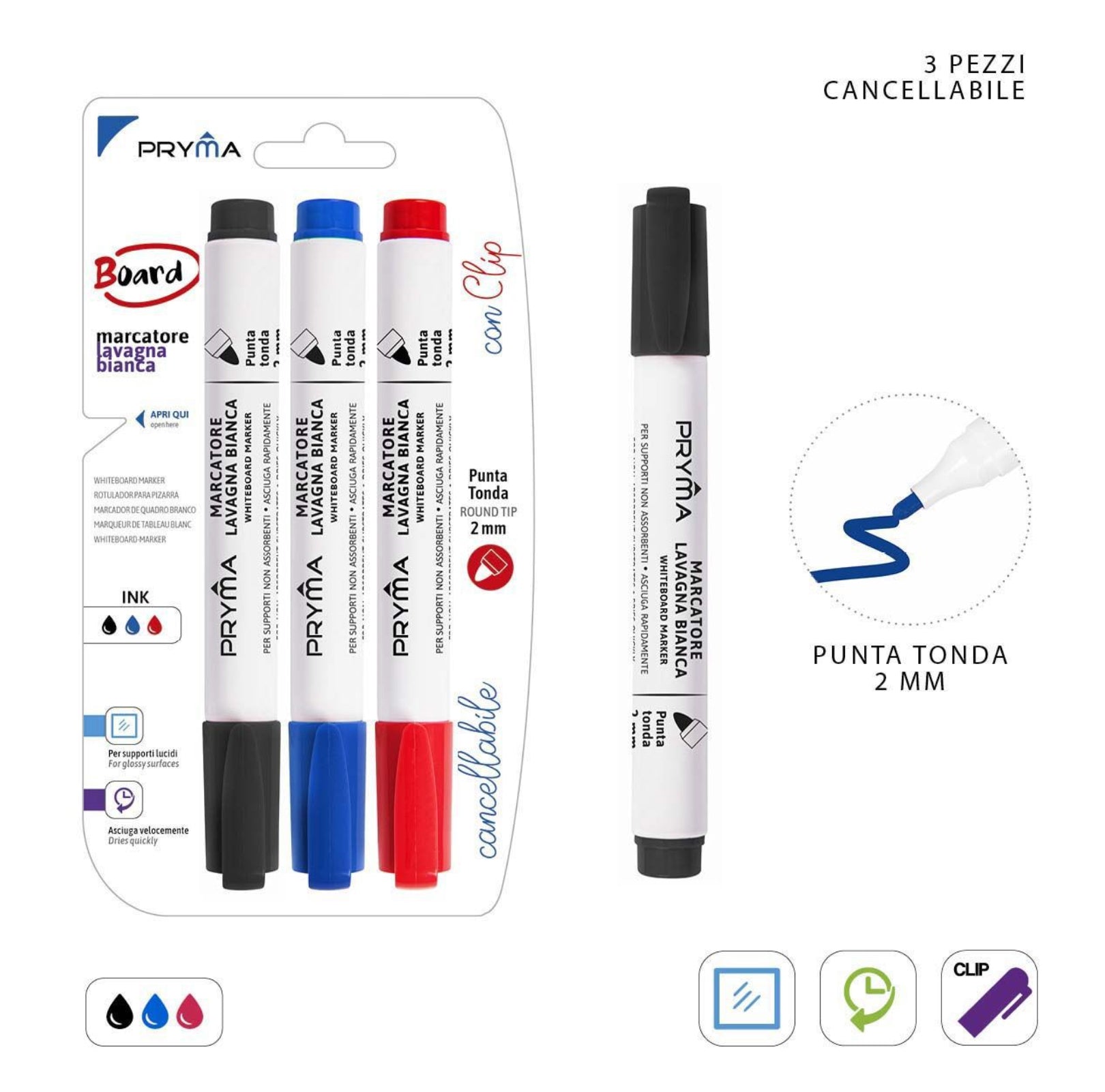 PRYMA marcatore lavagna bianca p/tonda 2mm 3pz N/B/R