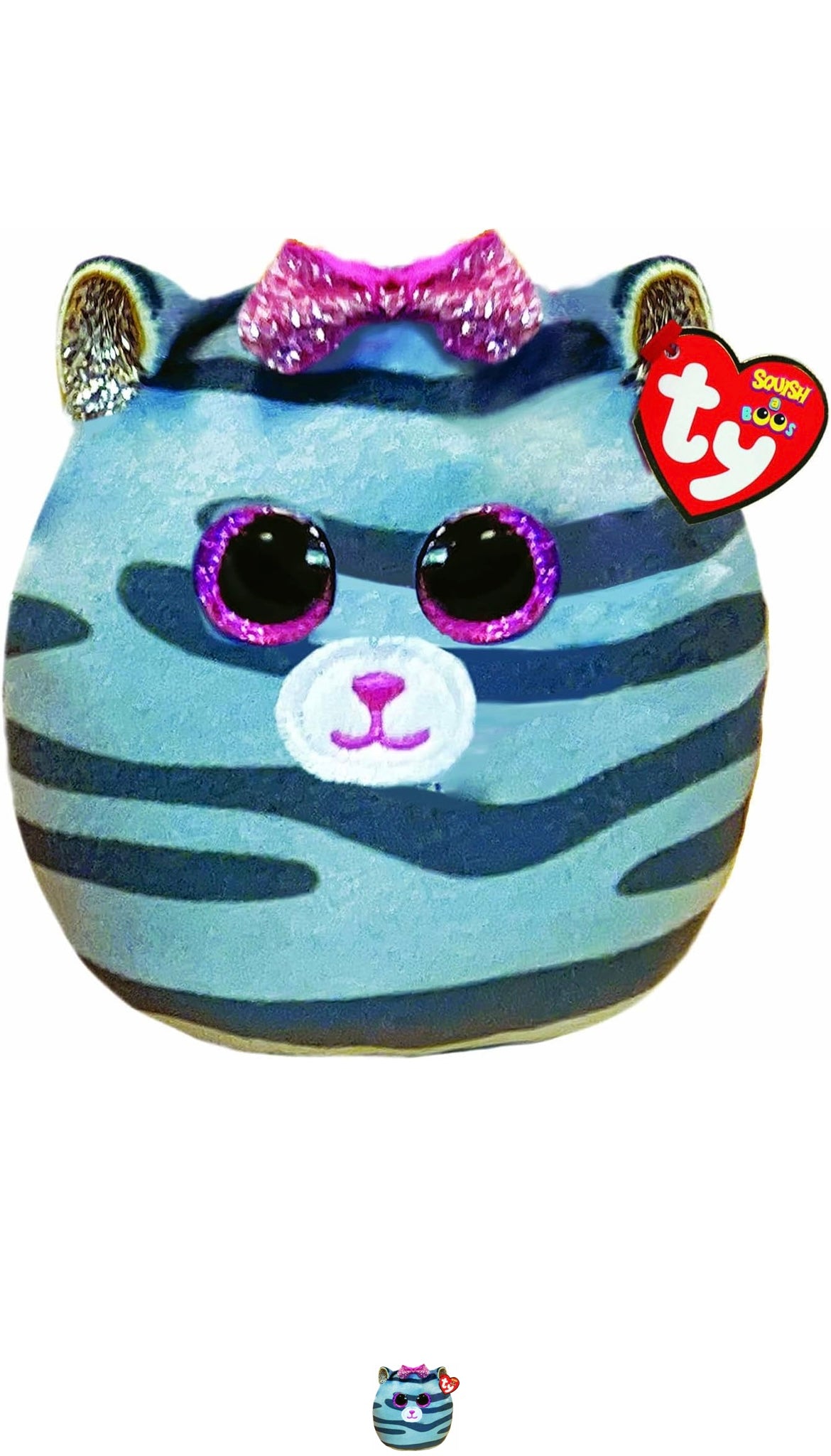 Ty mini squishy beanies,Kiki il gattino ,mini cuscino di peluche con occhioni e fiocchetto fucsia glitter,idea regalo per grandi e piccini,tutti da collezionare